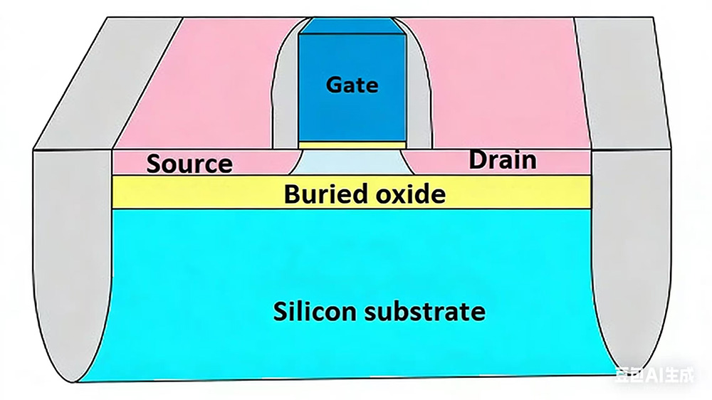 Присуство СиО2 изолационог слоја ефикасно изолује транзистор од силиконског супстрата испод. Ова изолација смањује нежељену струју од активног слоја до подлоге. Струја цурења расте са температуром, чиме се значајно побољшава поузданост чипа у окружењима са високим температурама.